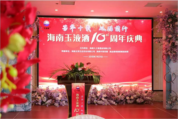 2019年7月21日,以“芳華十載 砥礪前行”為主題的海南久之美酒業有限公司(海南玉液酒)十周年慶典在新海府幸福大酒樓成功舉辦!