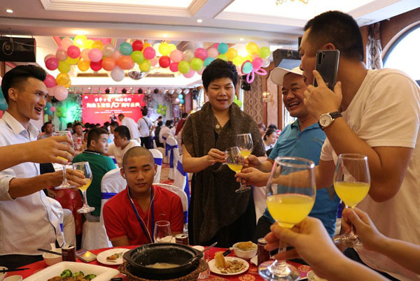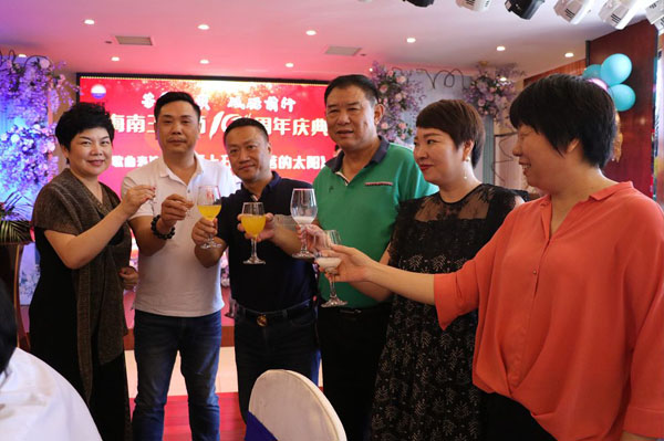海南久之美酒業有限公司董事長高莉女士與嘉賓代表們共同舉杯祝酒,歡迎大家蒞臨海南玉液酒10周年慶典活動現場。