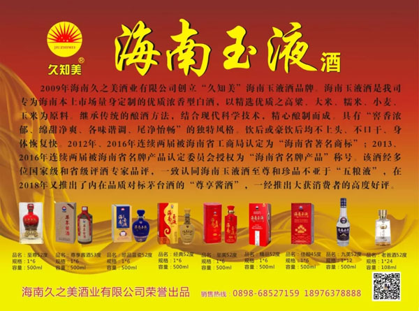 海南玉液酒,“只用品質說話”---海南久之美酒業永恒的追求!